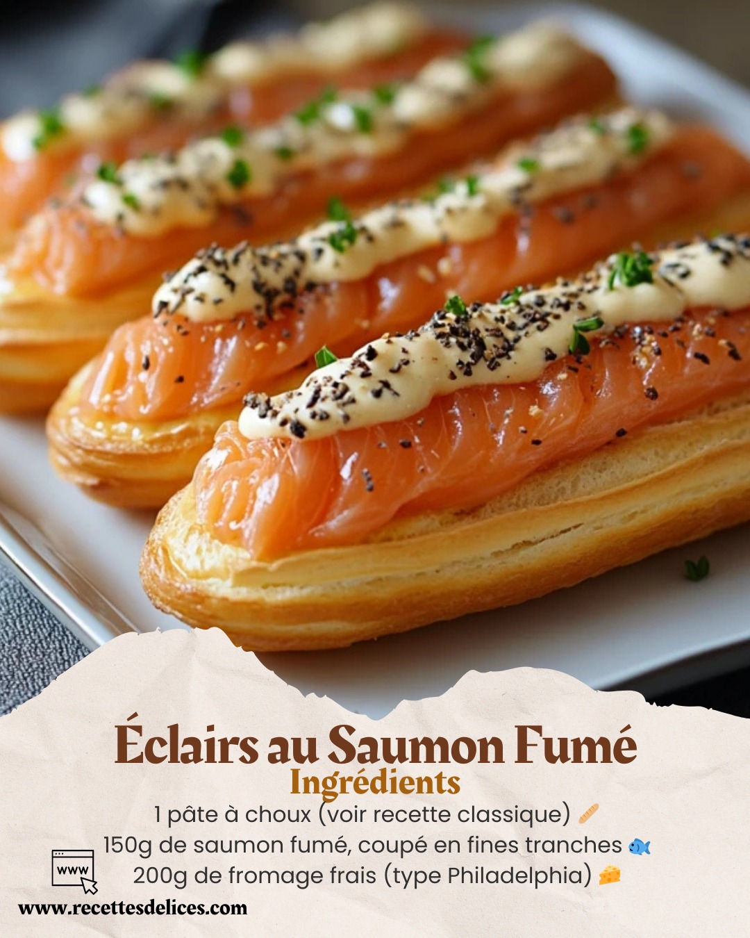 Les éclairs au saumon fumé sont une véritable pépite culinaire, alliant finesse, saveurs équilibrées et simplicité. Que ce soit pour un apéritif chic ou un brunch raffiné, cette recette est idéale pour impressionner vos invités. Essayez-la dès aujourd’hui et laissez-vous séduire par l’harmonie unique de ces éclairs savoureux !