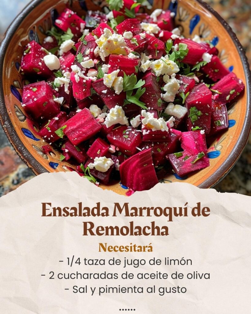 La Ensalada Exótica de Remolacha al Estilo Marroquí es una receta fácil y versátil que aporta una explosión de sabores y colores a tu mesa. Con ingredientes frescos y nutritivos, es una excelente opción tanto para comidas cotidianas como para ocasiones especiales. ¡Prueba esta receta y disfruta de los beneficios de una alimentación saludable y deliciosa!