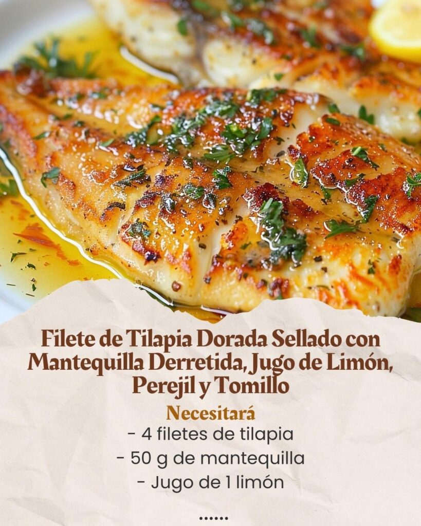En la cocina, pocas combinaciones son tan satisfactorias y llenadoras como un filete de pescado perfectamente cocido. El filete de tilapia dorada sellado con mantequilla derretida, jugo de limón, perejil y tomillo es un plato que logra capturar lo mejor de estos ingredientes frescos y sencillos. Este platillo no solo es delicioso sino también rápido y fácil de preparar, lo que lo convierte en una excelente opción para una comida entre semana o una cena especial. A continuación, te presento la receta completa con todos los detalles que necesitas para prepararlo en casa.