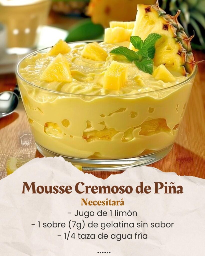 • ¿Puedo usar piña enlatada? Sí, pero asegúrate de escurrirla bien para evitar exceso de líquido en el mousse.